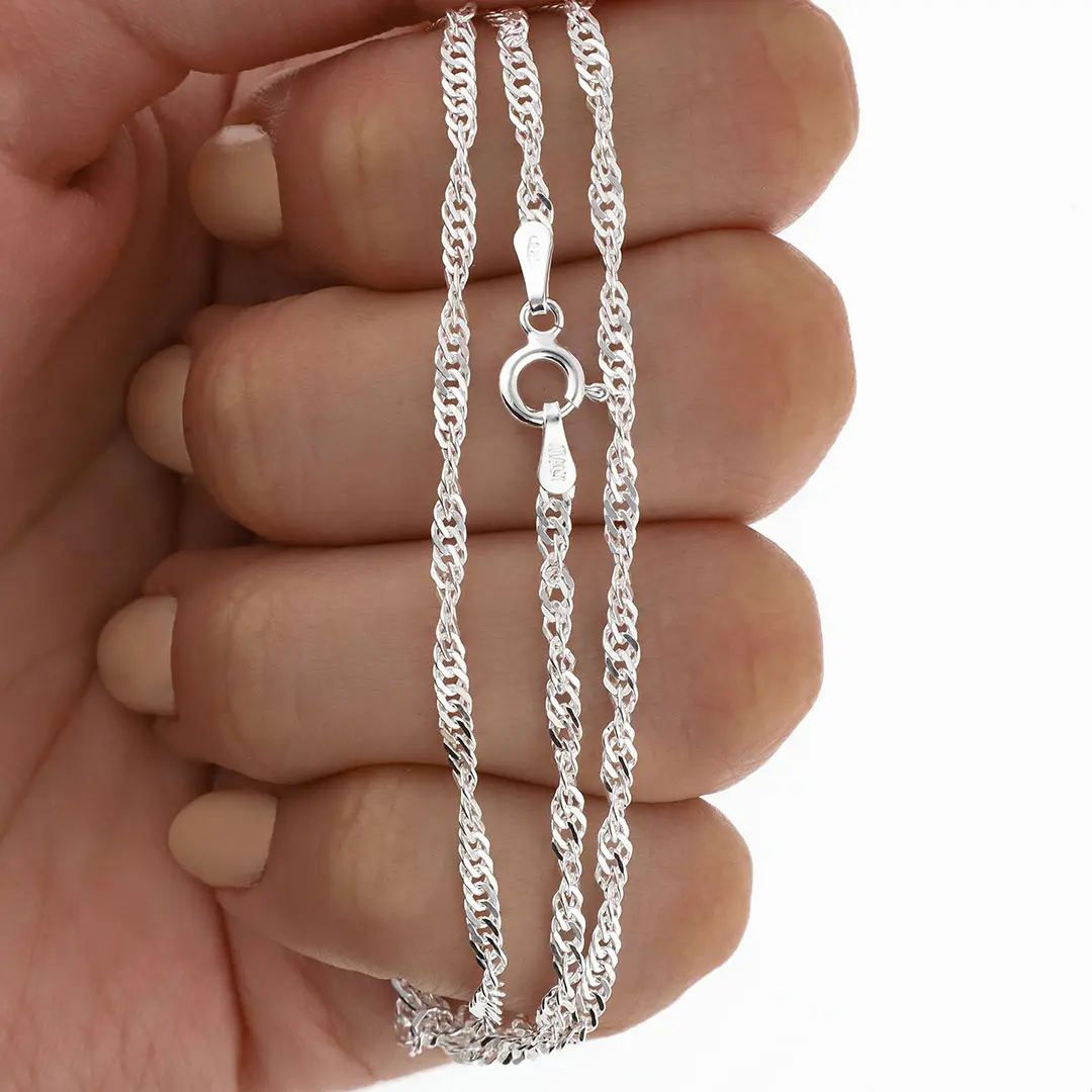 Cadenas italianas de plata 925, destacadas por su brillo, calidad y excelente terminación. Diseños clásicos y modernos, ideales para todo tipo de clientes. Producto de alta rotación con gran relación precio-calidad para reventa.