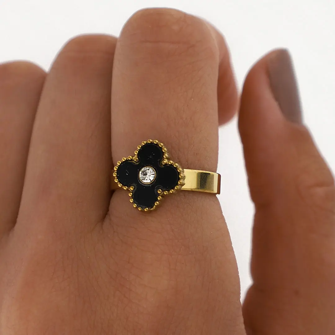 ANILLO TREBOL ACERO DORADO
