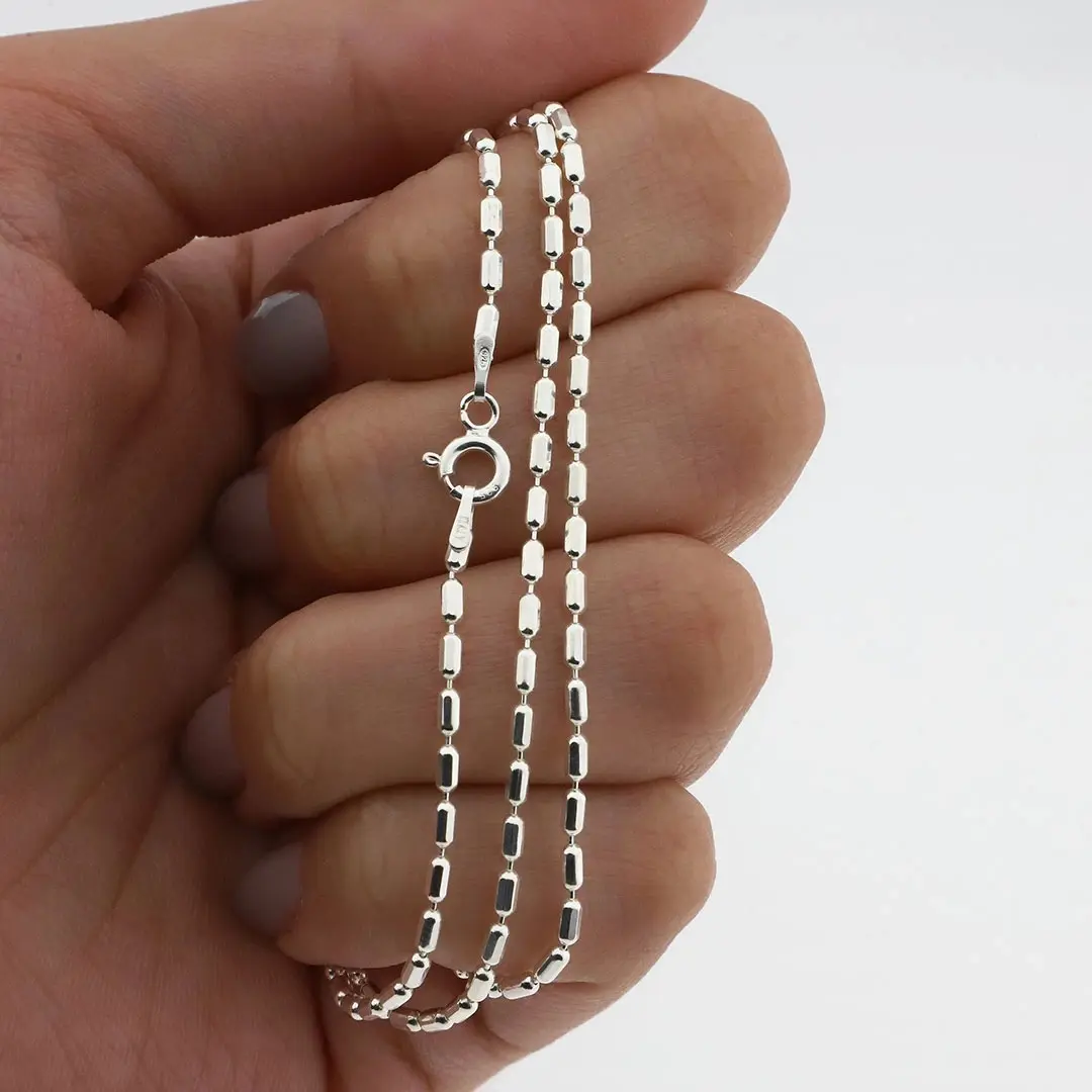 Esta cadena de plata cautiva con su elegancia atemporal. Sus eslabones pulidos y suaves reflejan la luz de manera sutil, añadiendo un toque de sofisticación a tu estilo.
