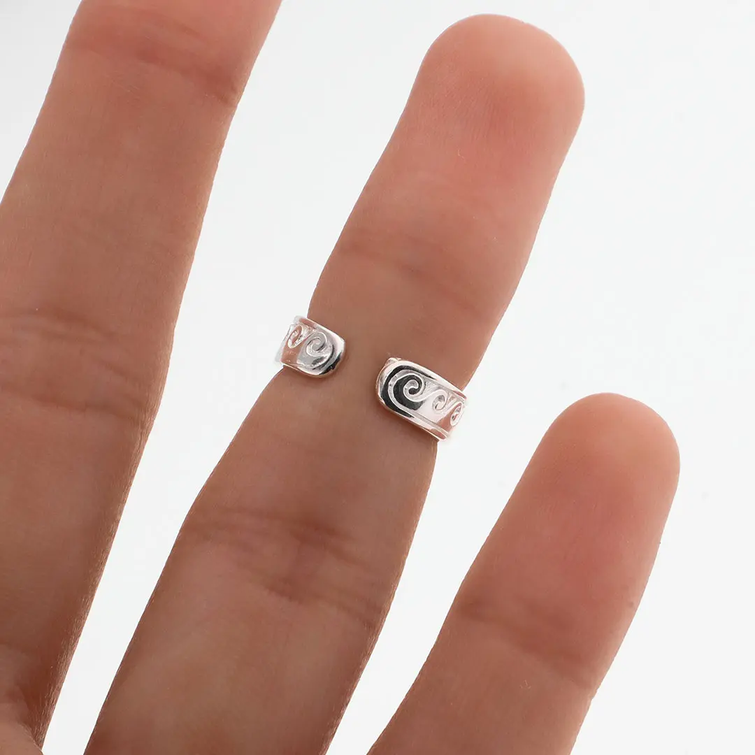 Destaca con estilo y originalidad con este anillo de falange único. Su diseño intrincado y ajuste perfecto en la parte superior de tu dedo crean un efecto visual cautivador. Lleva este anillo y haz una declaración de moda audaz y vanguardista.